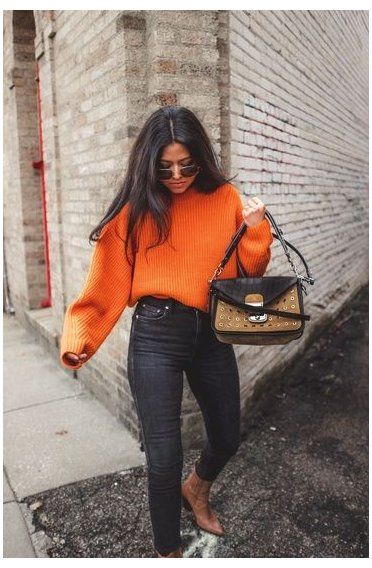 This is best colour for winter, match orange high neck sweater with blue jeans and you gonna π₯. Really gives you best casual look. What you’ll need – Orange sweater and blue jeans.