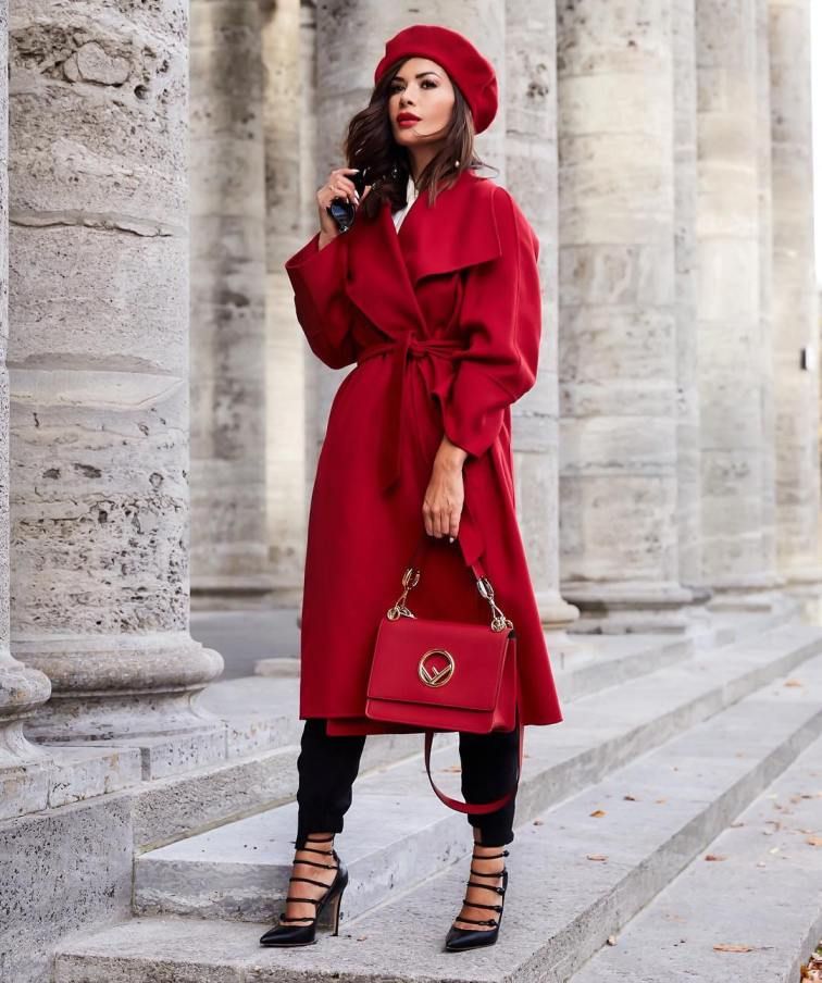Red is symbol of fire π₯ and if you are red lover then try this look. Combine red coat with black Jean and cute red winter cap. What you’ll need – red coat with black Jeans and winter cap.