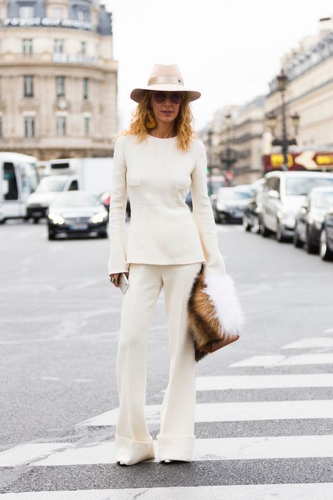 If you just happened a white hat that perfectly match up with your winter flare pants . Go simple with the outfit to give your statement piece. It’s really gone give you fells like winter . what you’ll need – White flare pants match with full sleeve top and hat.
